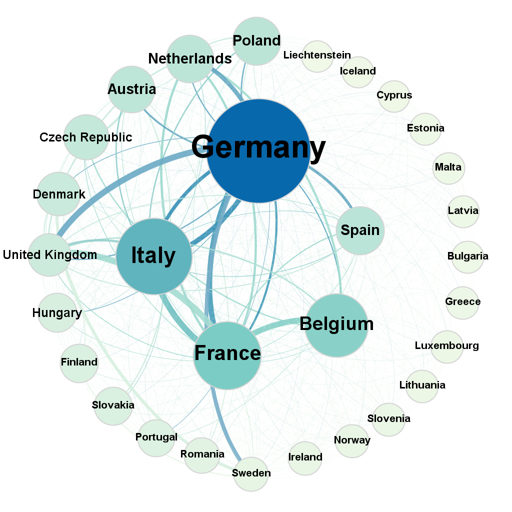 Quello che non emerge direttamente da questa pur eccellente lettura dei dati è l’aspetto relazionale. Risulta quindi interessante esaminare le interdipendenze tra le varie nazioni per capire quali sono maggiormente interconnesse e quindi reciprocamente dipendenti dal punto di vista del debito sovrano.