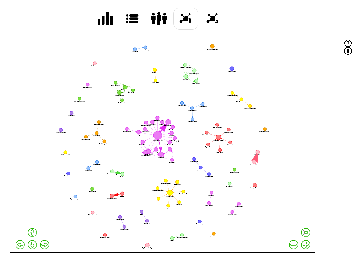 The network is downloadable in GEXF format clicking on the upper right arrow icon
