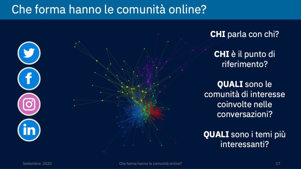 Salendo di complessità, un passo oltre la folla è la comunità, pensando al mondo online e dei social media, possiamo parlare di comunità virtuale (o comunità online). Persone che, attorno a interessi comuni, si organizzano e interagiscono grazie alla tecnologia. Anche all’interno delle comunità virtuali si instaurano generalmente rapporti di potere e influenza, che vanno dai ruoli di tipo tecnico (amministratore, moderatore) alla concorrenza dialettica di idee su argomenti di interesse comune o per la definizione di regole proprie della comunità.